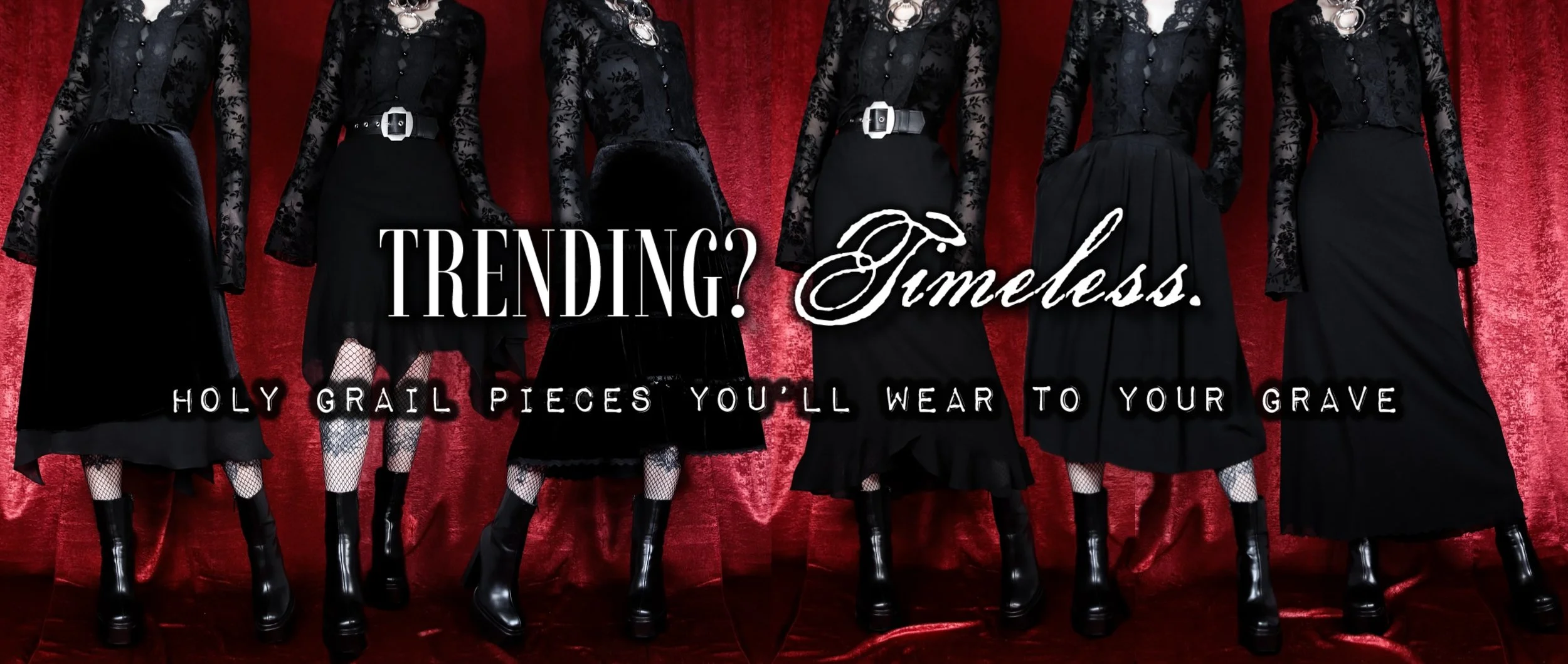 Founded in 2014, Last Rites was the first online vintage shop specifically curated for a darker aesthetic. We are proud to be the longest-running shop of our kind, bringing you ethical and sustainable alternative clothing in a world filled with toxic fast fashion, influencer marketing, hype, and waste.