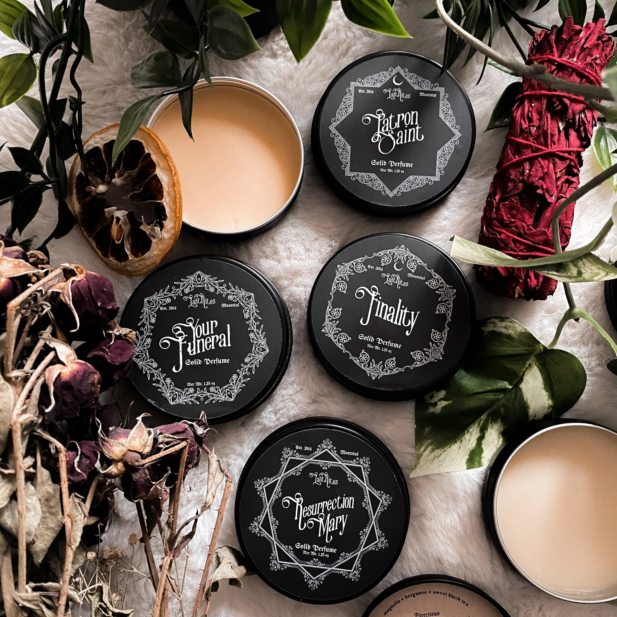 Our fragrance blends are inspired by haunting local lore, religious and occult ritual, beloved memories, familiar moments, and the dark side of natural world.