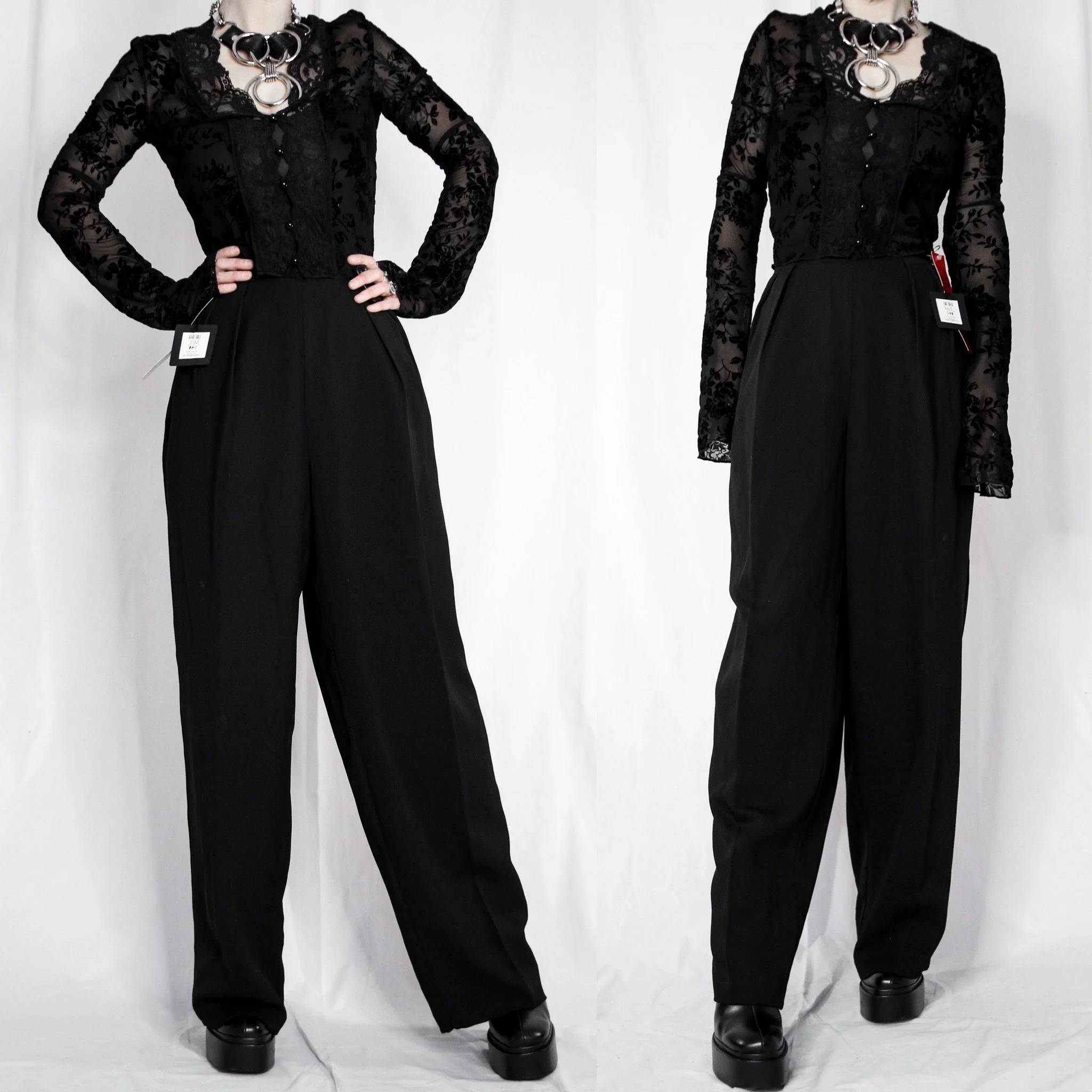 Vintage 90s SK & Company classic black trousers. Deadstock with original tags attached! These are such a staple for the office goths and have become one of our most coveted signature styles.