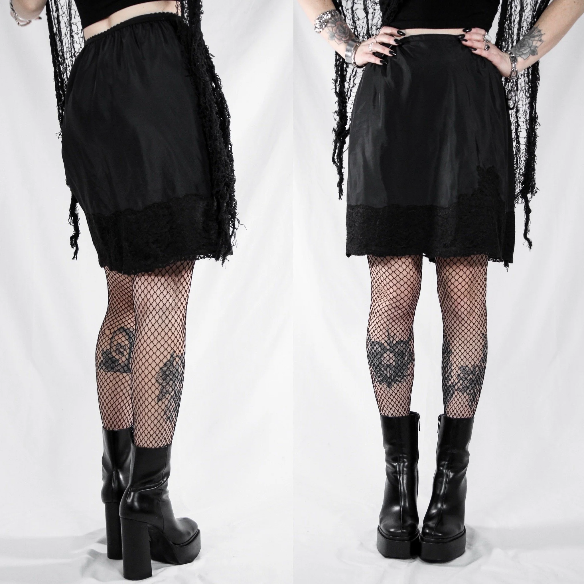 Vintage 1960s satin slip skirt. Perfect for wearing under your favorite wool/itchy dresses and skirts to minimize itch and cling, or style it alone! Mini length with gorgeous embroidered lace trim at the hem. Elastic waistband, pull-on style. Very lightweight and delicate, 50-50 poly-nylon blend is matte and opaque.