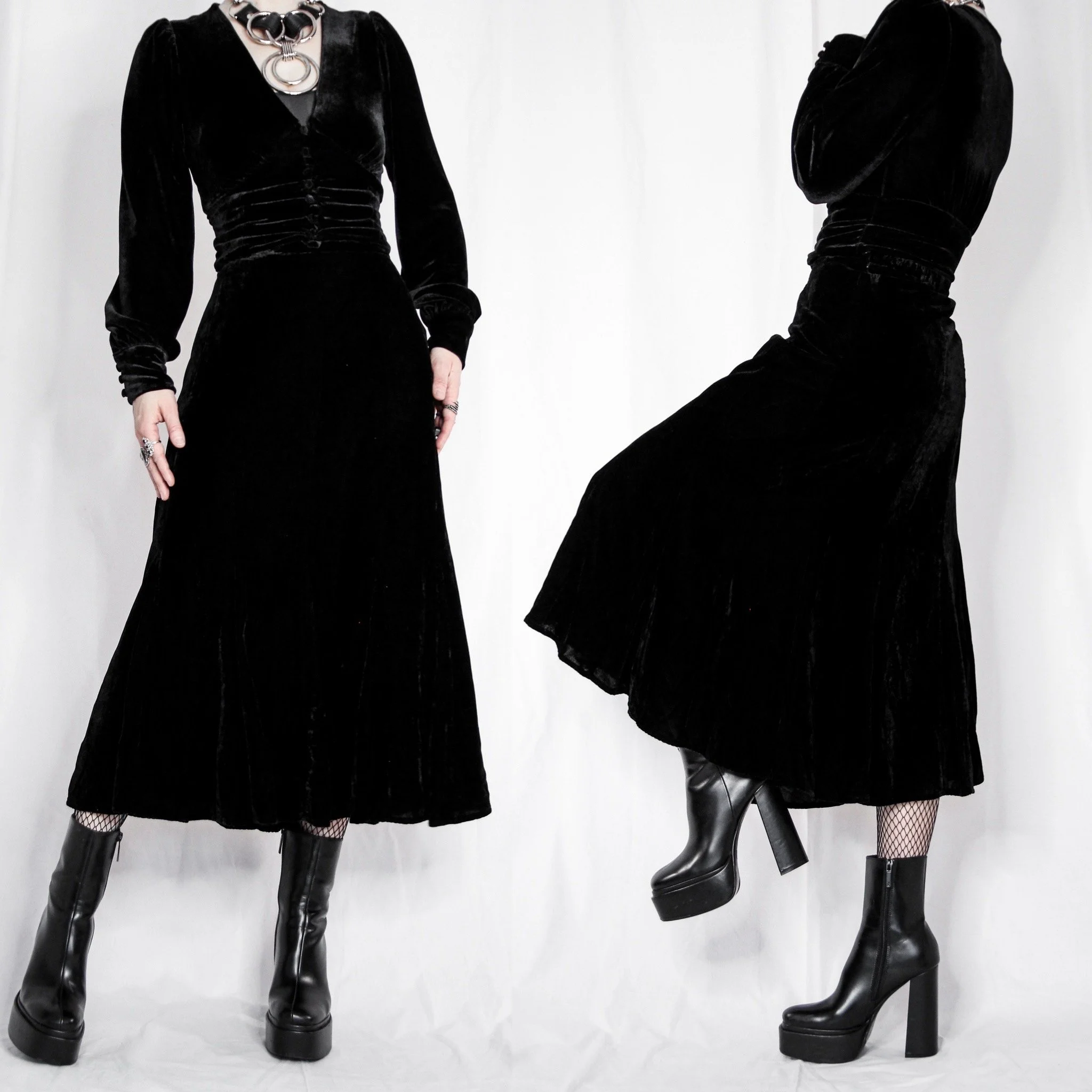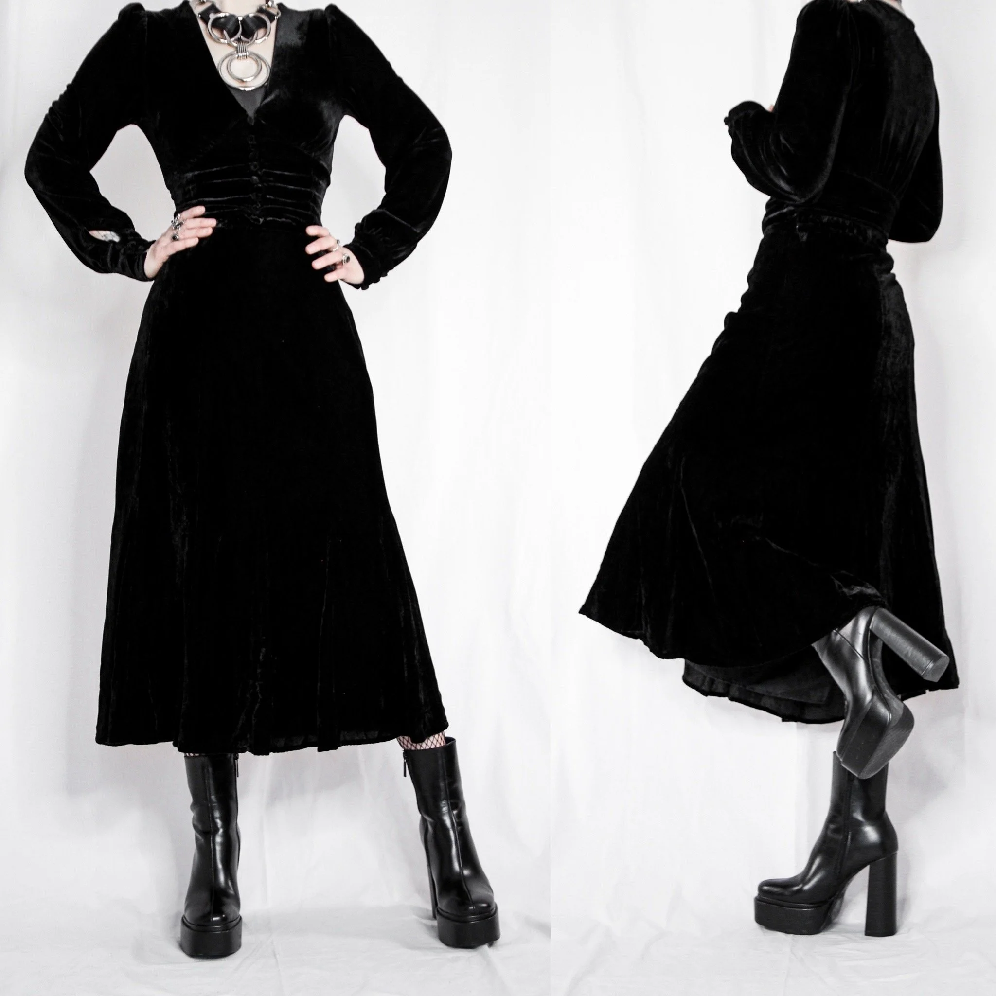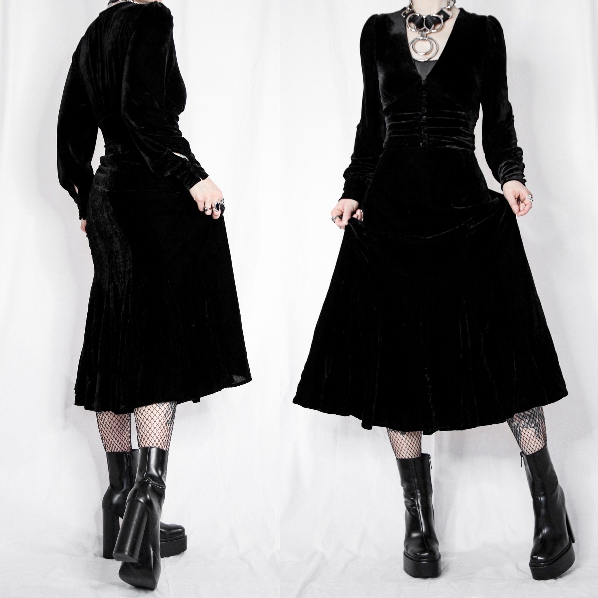 Vintage 90s JM Collections velvet skirt. The witchy staple skirt of your dreams! This would look amazing worn with a ruffled petticoat underneath it, and/or paired with one of our gothic blouses.