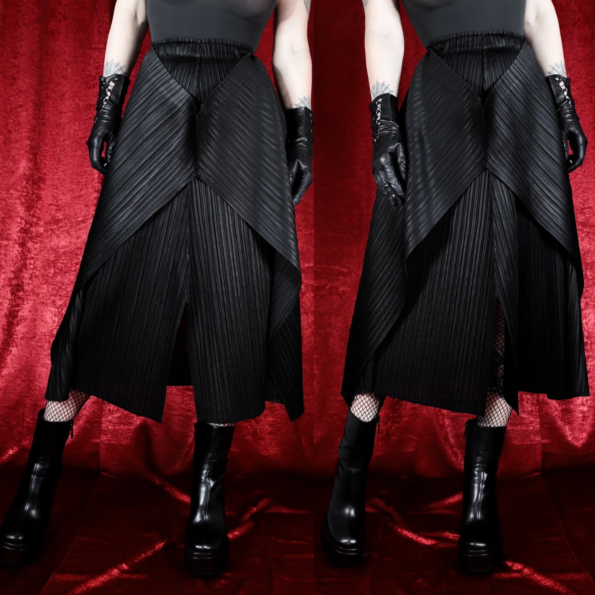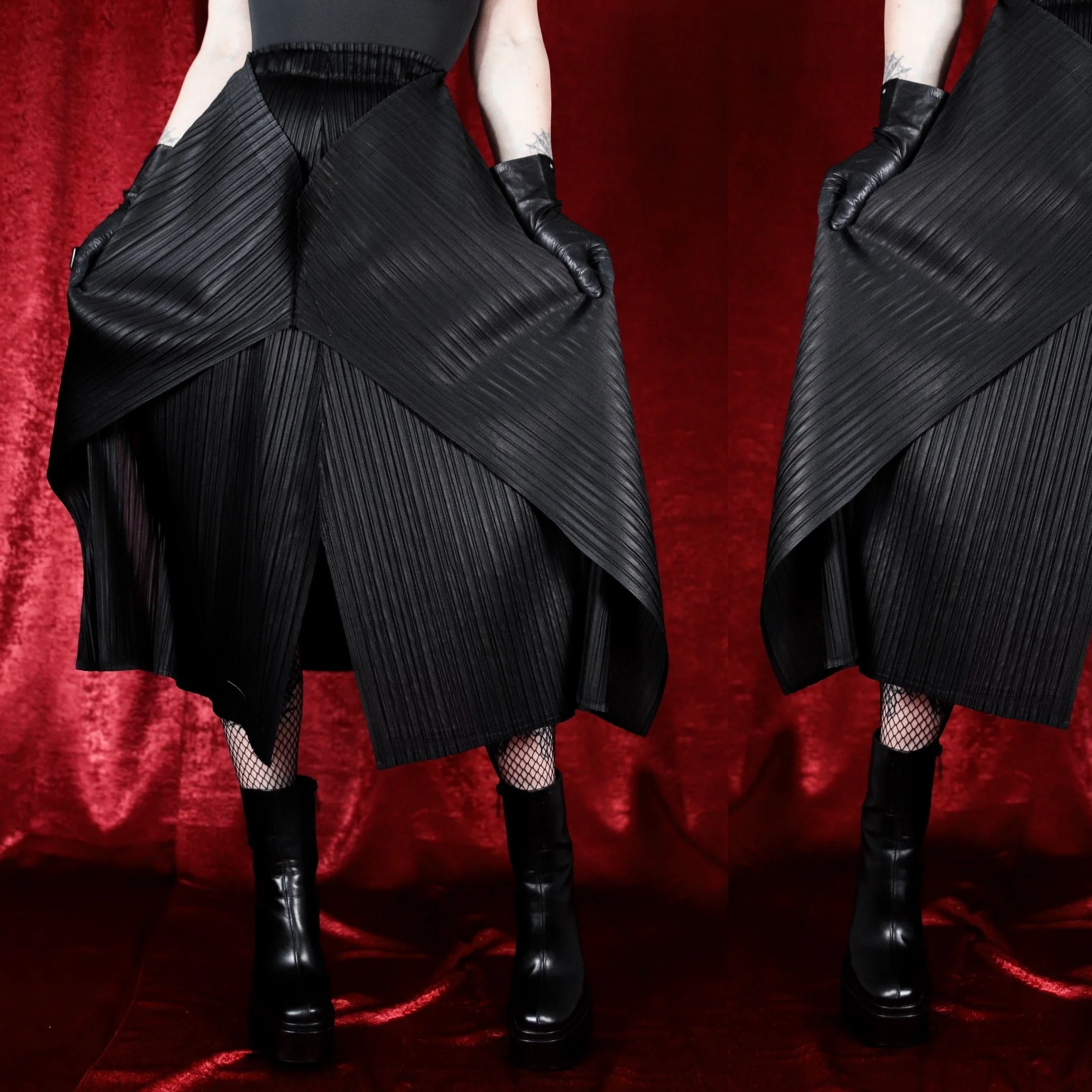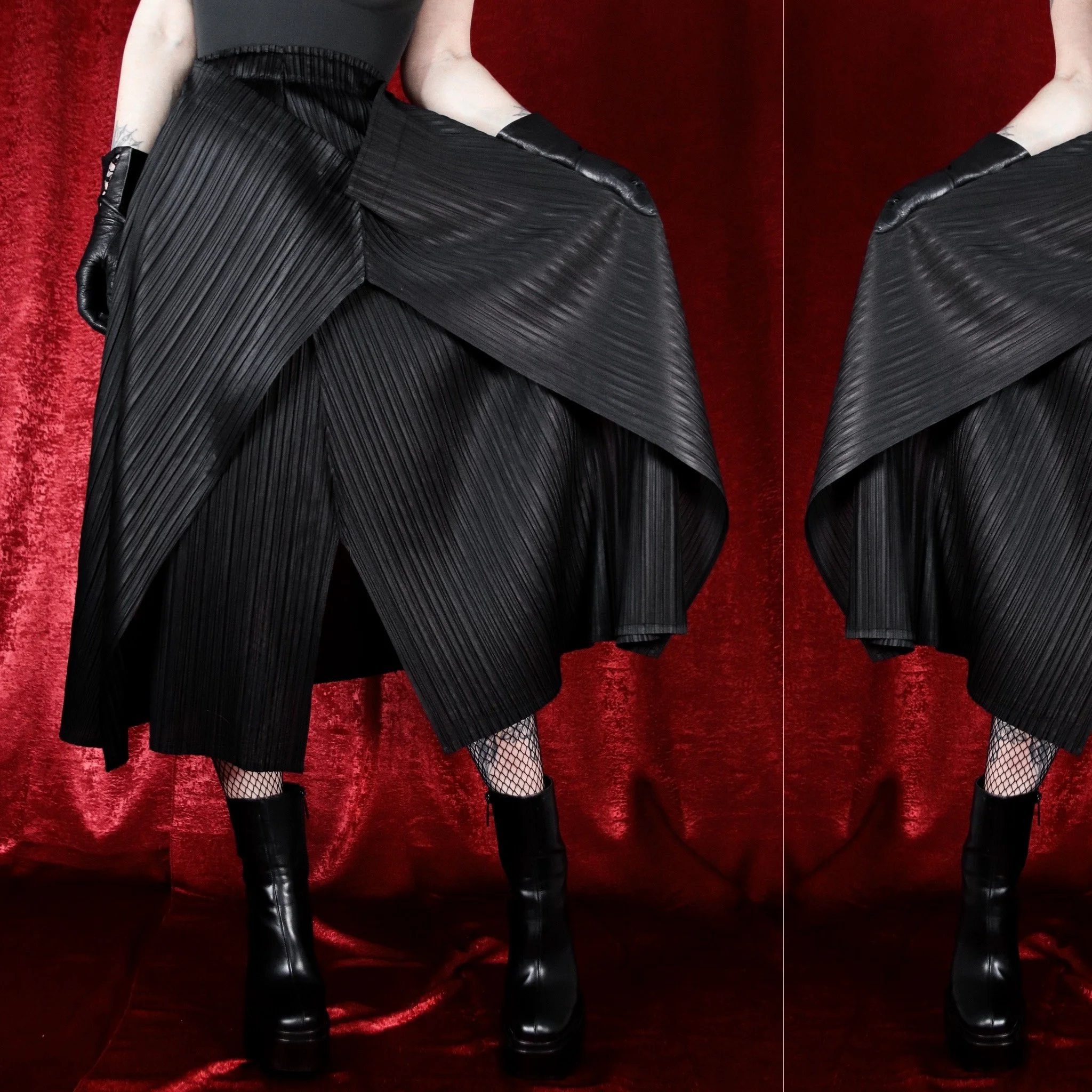 Issey Miyake-style draped asymmetrical skirt. A perfect everyday goth skirt with a unique twist! This one has the coolest shape, perfect for adding some extra texture to a simple look.